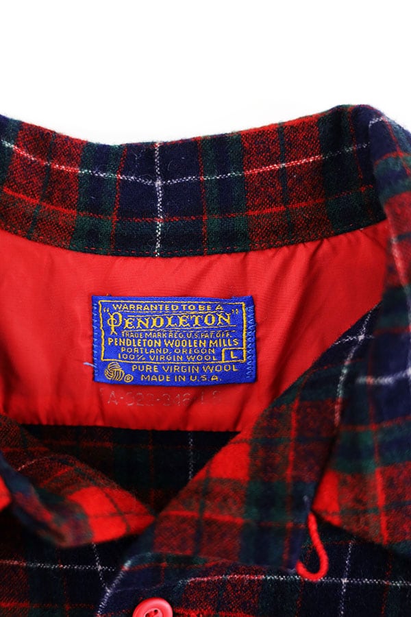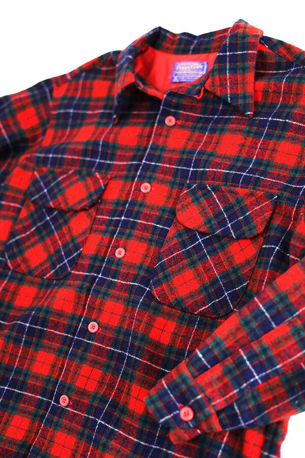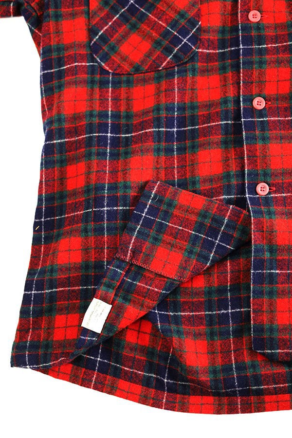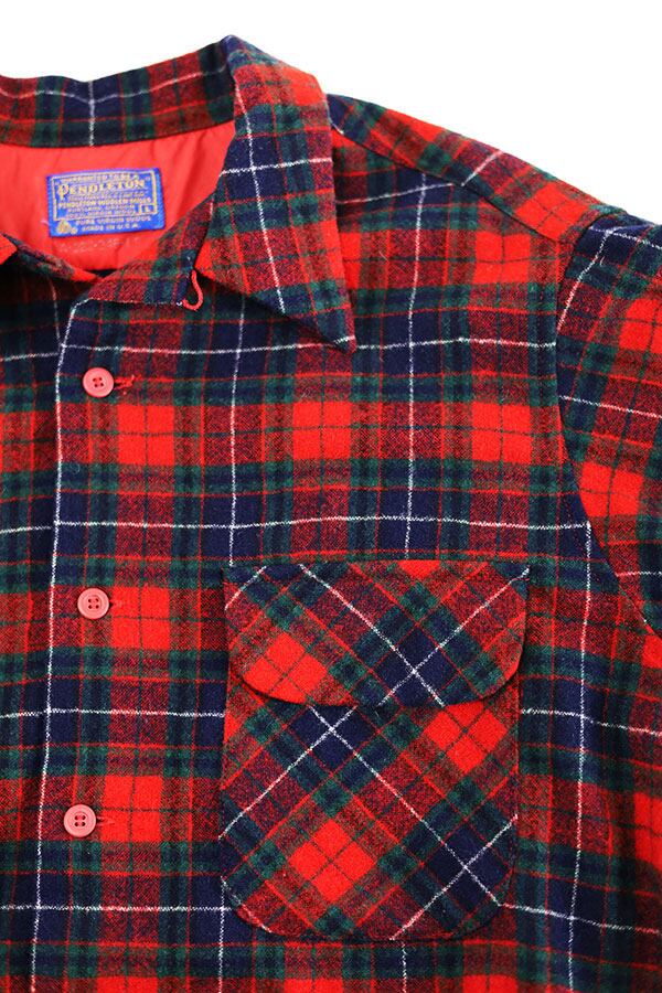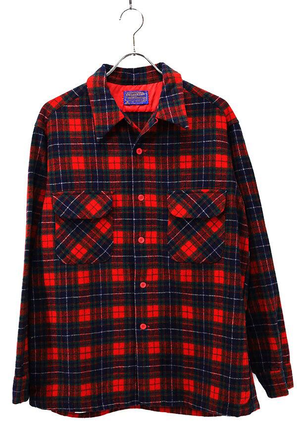 Used 70s USA Pendleton Red Check Wool Board Shirt Size L 古着