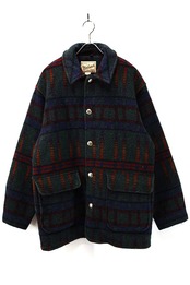 Used 00s USA Wool Rich Moss Green Native Pattern Wool Middle Jacket Size L 古着