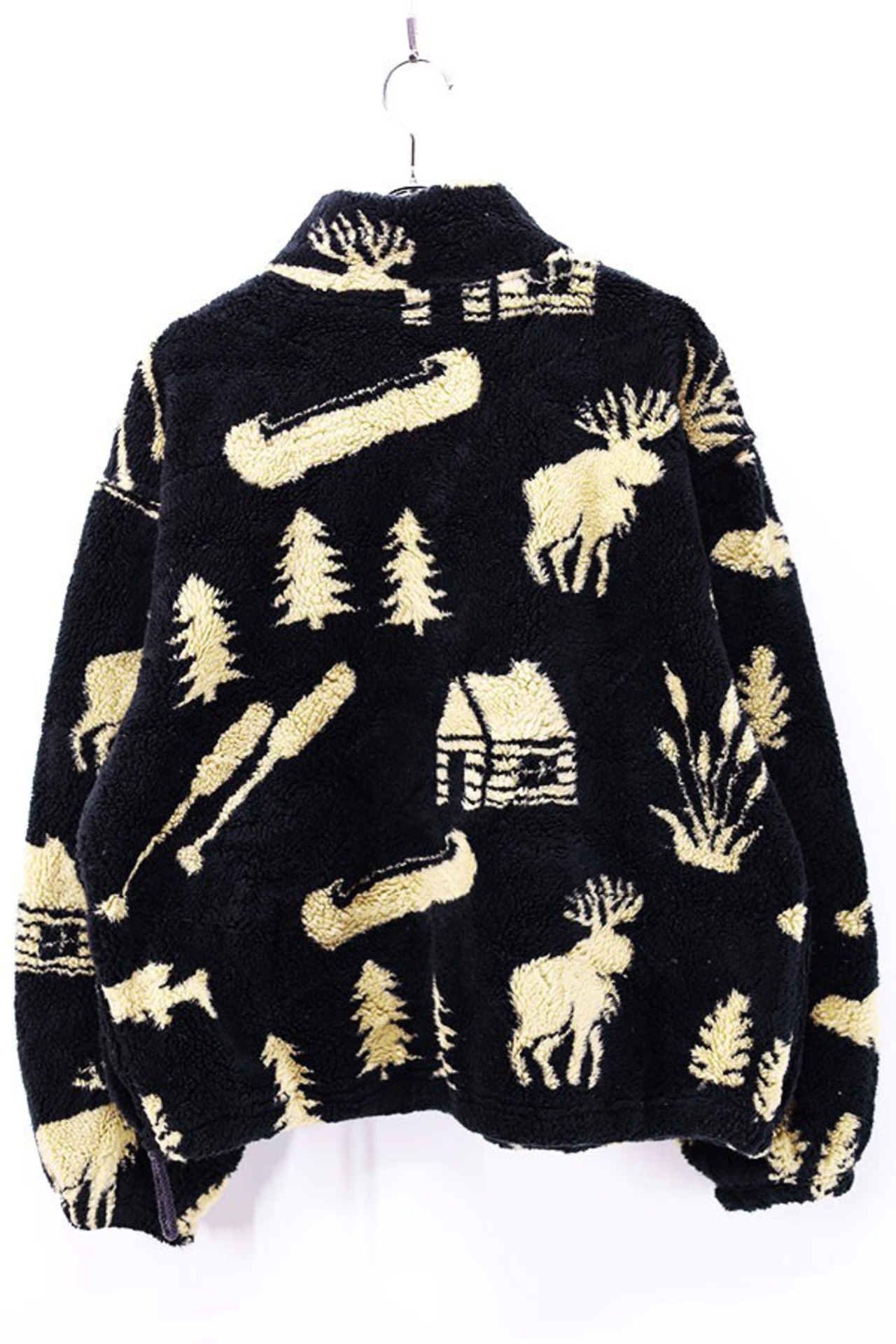 Used 90s CDS Black×Ivory All Over Graphic Fleece jacket Size L 相当 古着