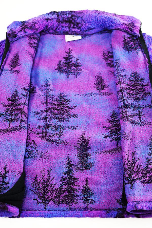 Used 90s USA BLACK MOUNTAIN Purple Tree All Over Graphic Fleece jacket Size M 古着
