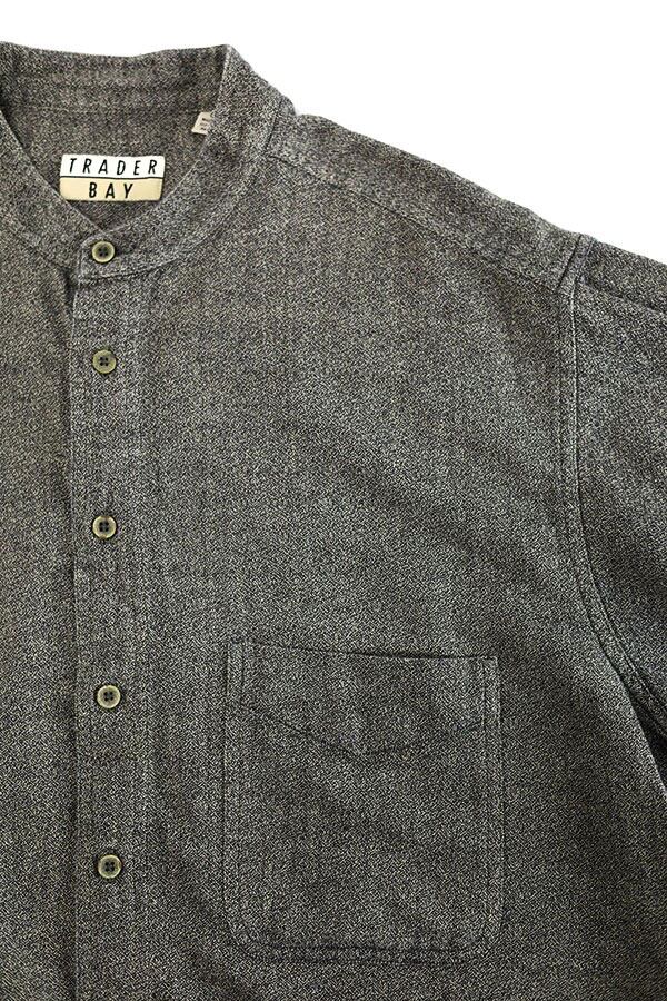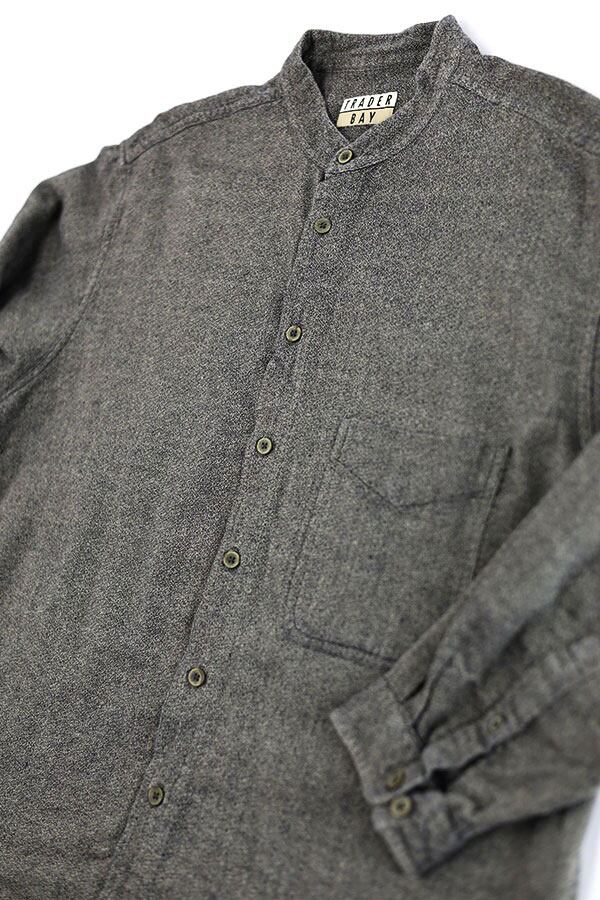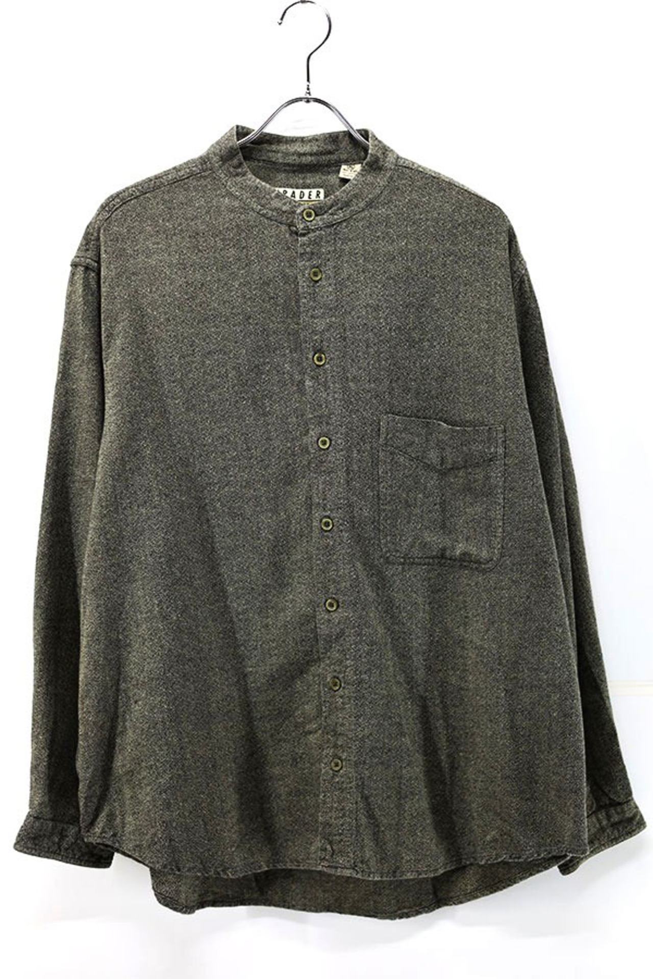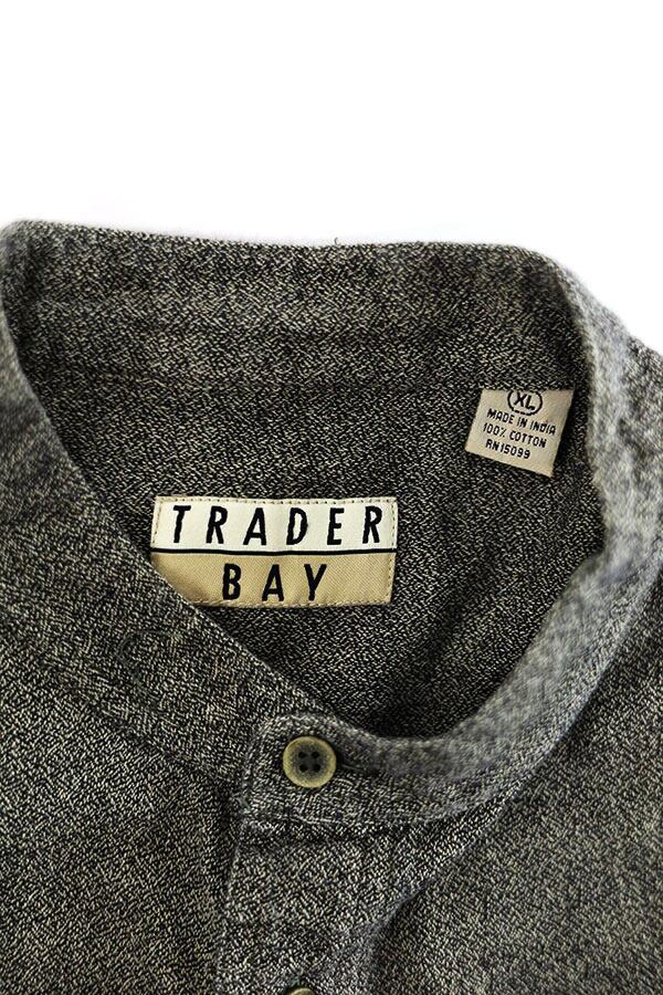 Used 90s TRADER BAY Gray Cotton Stand Collar Design Shirt Size XL 古着
