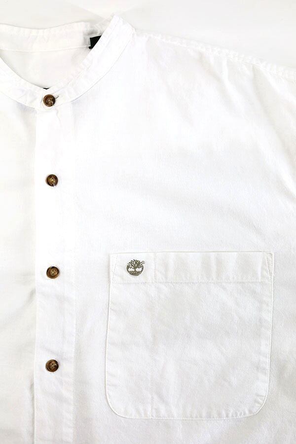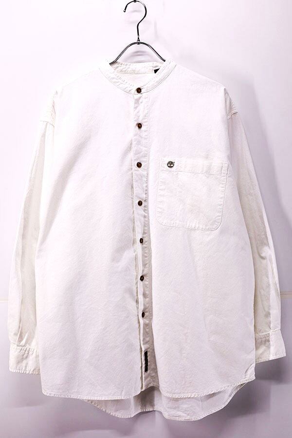 Used 90s Timber Land Stand Collar White Cotton Shirt Size M 古着
