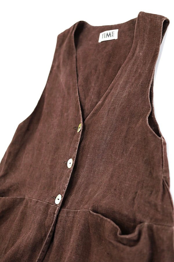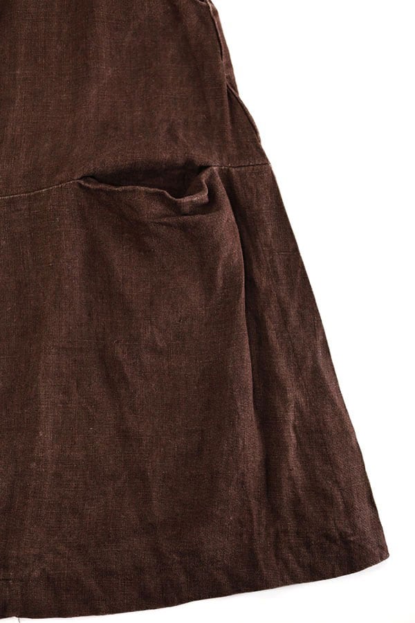 Used 00s TIME COLLECTION Dark Brown Linen Dress Size M 相当 古着