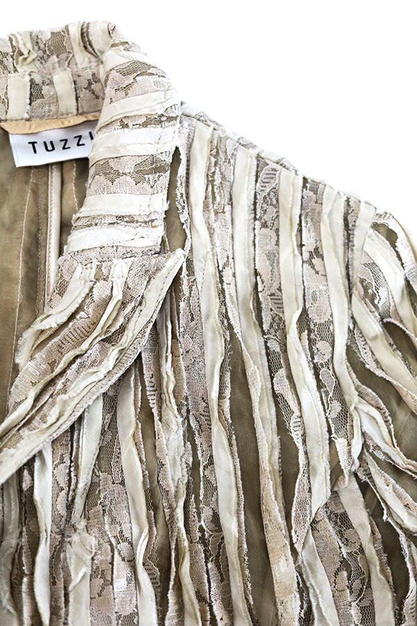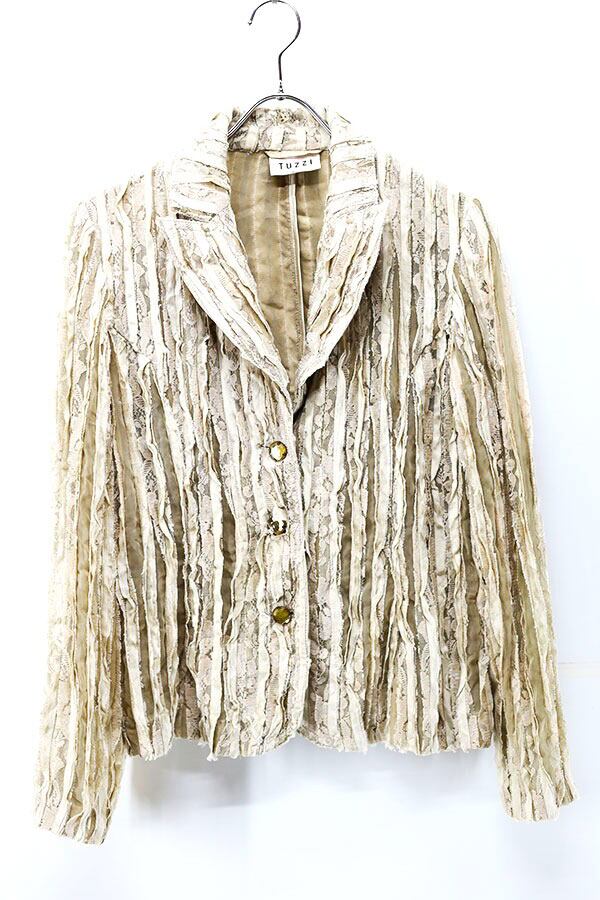 Used 00s TUZZI Light Beige Sheer Stripes Tailored Jacket Size M 相当 古着